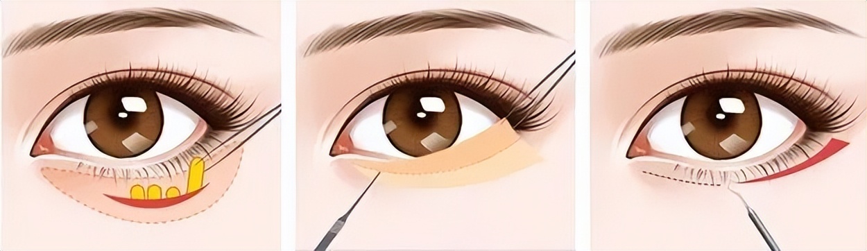 适用于眼部皮肤比较紧致的人,医生会在眼睛内部下眼睑的位置开一个小口,把脂肪取出来。这种术式的好处是切口相对小,不用拆线,恢复得比较快。