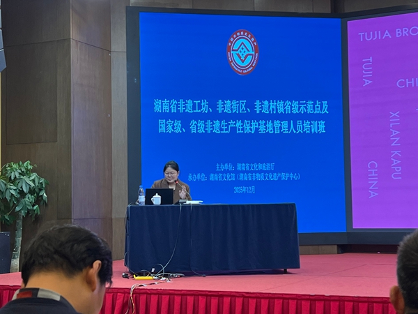 12月12日下午,培训虽已结束,但思考与实践才刚刚开始。湖南非遗的焕新之路告诉我们,最好的保护不是将非遗供奉于高阁,而是让其融入时代脉动,在市场中检验价值,在生活中绽放光彩。未来的非遗工作者,应是匠心与数字思维兼备的“策展人”,是传统文化与现代生活的“连接器”。胡敏老师的课程中,为我们提供了非遗与旅游融合发展的新路径,新思考,我们将带着胡敏老师的指导和其他各位老师们的研究成果,经验,视野与信心,投身于更广阔的非遗活化实践中,让多彩非遗在当代续写新的传奇。