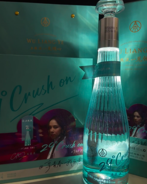 今年8月底,五粮液推出战略新品“一见倾心”29度光瓶酒,500ml定价399元,没有礼盒、没有过度包装,只有一瓶天青色的简约瓶身,