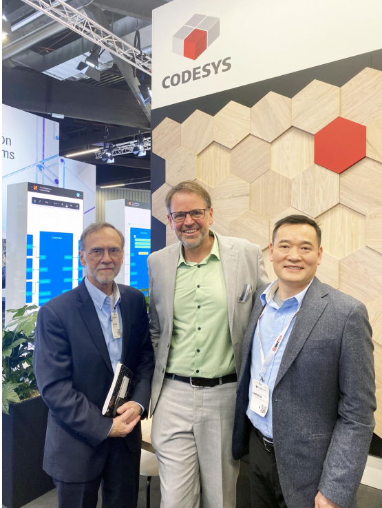 同时,上海晶珩总经理Austin、国际营销顾问Randall与CODESYS CTO Hilmar也进行了深入交谈,进一步增强了我们合作的关系。活动期间分享的激情和愿景非常鼓舞人心。下面的照片完美地捕捉了我们合作的精髓——它建立在信任、创新和共同成长的基础上。