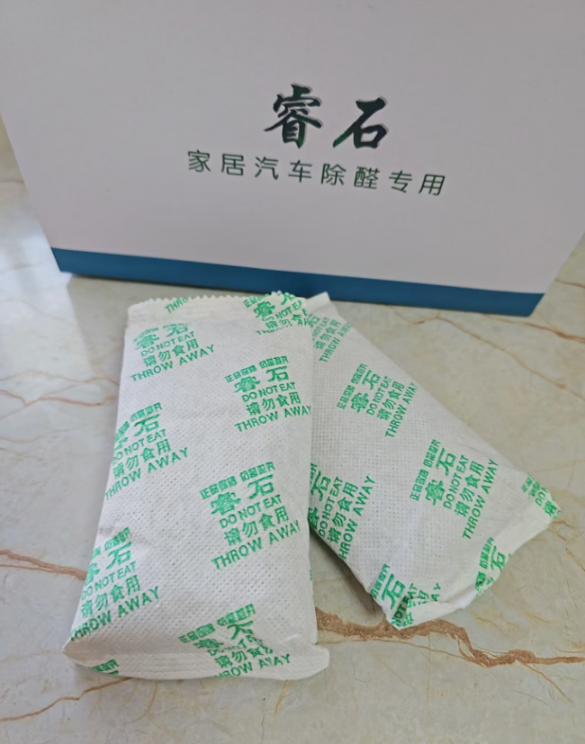 核心原理: 物理吸附。睿石是一种天然矿石,睿石经特殊工艺活化后会生成丰富的孔隙,睿石活化后的比表面积是活性炭的30倍以上。其内部发达的纳米级孔隙结构与甲醛分子直径高度匹配,能像磁石一样高效靶向捕捉甲醛、苯、TVOC等有害气体分子。