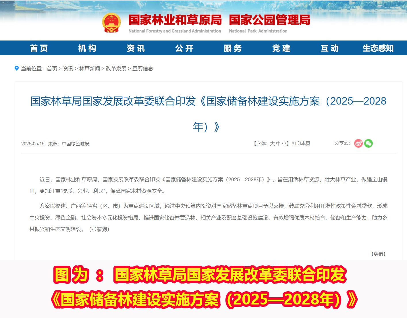 “国家有什么样的经济方面的战略呢?就是国家储备林规划,国家储备林规划原来准备在全国铺开,今年的政策有所调整,只是在南方的14个省,包括广东、海南、福建、长江中下游、黄淮海、西南三省,加起来是14个省。因为中央看到什么呢?国家储备林建设很可能成为国民经济发展重要的拉动力量,中央用超长期国债和中央预算内投资这两笔钱,给南方14个省的每个县很可能投的就是:一笔投下去就是五千万元,中央资金给你投进去,还可以国家开发银行给两个亿的贴息贷款,由财政部贴息,还有其他商业银行的贷款。国家的目的就是要通过国家储备林建设这样一个基础工程,带动农文旅联动发展,以中央资金为基础,地方政府配套,然后再进一步吸引民营资本进入,是在目前经济形势严峻情况下的一项国家战略。”