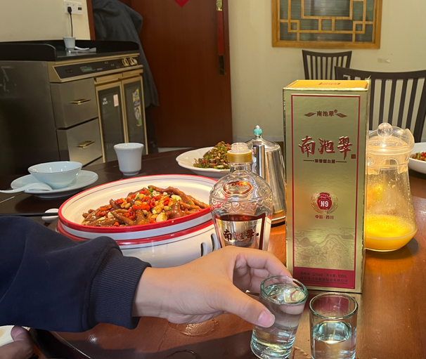 我递上南池翠N9,他没嫌弃包装朴素,反倒饶有兴致地当场开瓶,凑近鼻尖轻嗅,紧接着倒出一杯,酒液清亮通透,酒花绵密持久,轻抿一口便缓缓点头,开口夸赞:“这酒陈香正、入口绵,不辣喉、回甘净,酒体很厚实,不比市面上400多的大牌浓香酒差。”