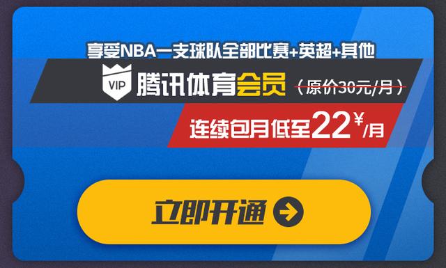 腾讯体育会员原价30元/月,开通连续包月仅需22元/月。即可畅享一支球队NBA所有比赛。还想看更多的比赛?英超、NCAA等超多黄金赛事也为您准备好了。