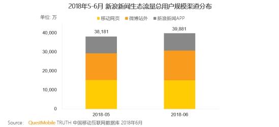 QuestMobile 数据显示,2018年6月,新浪新闻生态流量总用户规模达3.98亿,环比增长近1800万。移动网页中浏览“体育”内容的用户规模也有所增长,世界杯小组赛期间日均UV增长8.8%。这也侧面体现出新浪新闻在转型智能媒体平台的同时,其传统业务仍是新浪新闻构建流量生态的重要环节。
