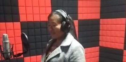 开始的大衣嫂只是一个人在录音棚里录歌,并没有大衣哥陪在旁边已经排练好的歌曲,真到了她独自已经唱的时候却不知道该怎么开口,身上灰色的衣服,大嫂打扮得并不是很突出,也显得十分的低调,她面带笑容的样子还是蛮接地气的。