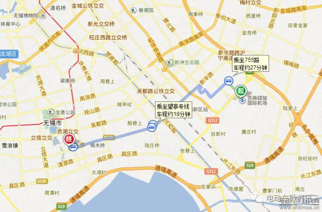 少换乘:机场出来步行1.6公里,在锡钦路(新梅路)上车,乘坐755路经过9站在国家软件园下车,步行220米至另一个国家软件园站乘坐望亭专线站后在震泽路(贡湖大道)下车,步行540米即可到达。