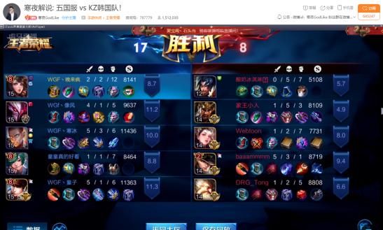 第二局,寒冰杨戬、像风干将,其余三位主播则是拿到别的英雄,第二局KZ战队知道有几个节奏点不能放,所以也改变了BAN\PICK思路,可惜第二局五国服越打越顺手,很快就结束了比赛!