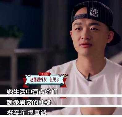作为好友的包贝尔近日说丽颖爷们:“她生活中有点爷们,就像男孩的性格,挺实在,挺真诚。”