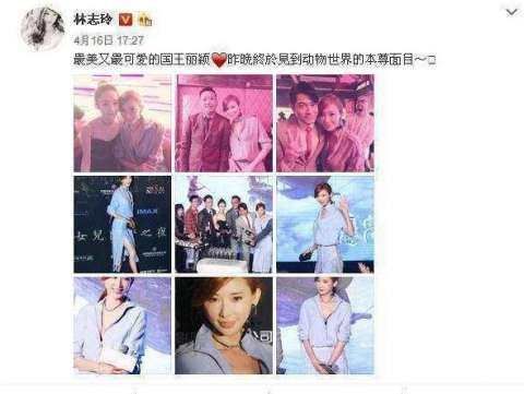 林志玲在台下跟赵丽颖亲密搂肩合影,还在微博发出两人的合照,大赞赵丽颖美丽、可爱,并表示终于见到本尊,这也证明了两人相处很愉快啊。
