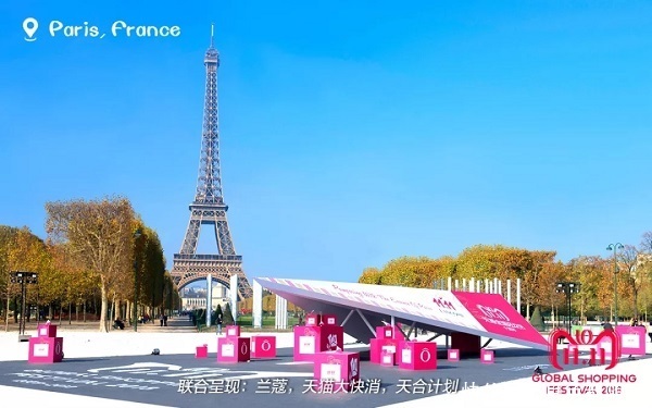 兰蔻在巴黎埃菲尔铁塔前折了一支纸飞机,用红白相间的色调和散落满地的快递纸盒为双11庆生。