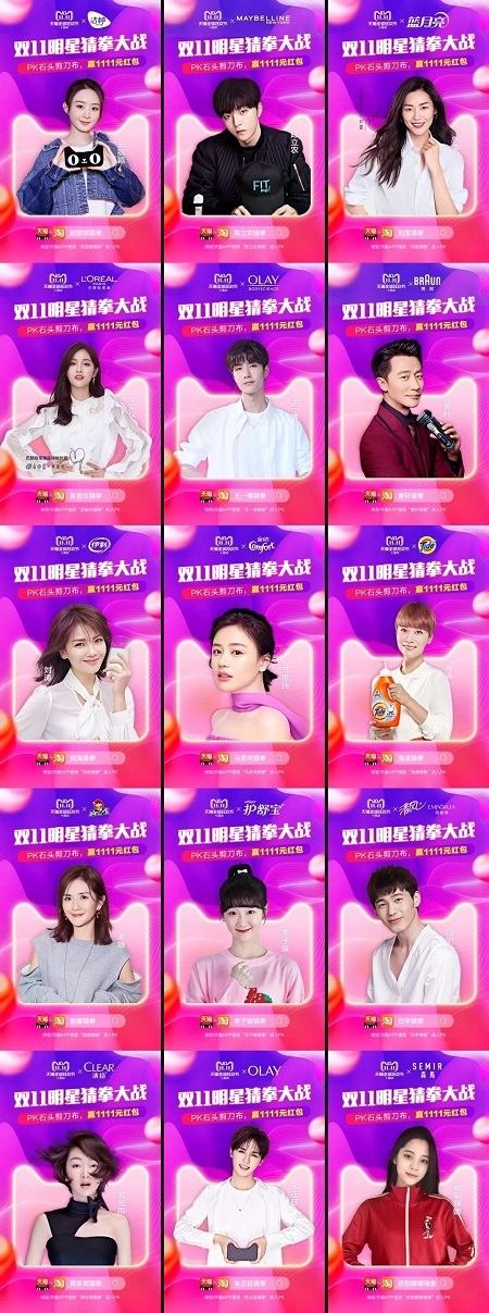 天合计划邀请赵丽颖、周冬雨、马思纯、白宇等15个知名品牌的代言人,与拍立淘团队深度共创,推出的#明星猜拳PK#,让消费者可以通过手淘/手猫,与其喜爱的明星面对面猜拳PK,真正实现零距离互动,赢双11十周年1111元现金红包。活动上线一周互动人数即破千万。