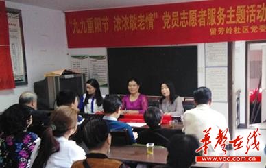 华声在线日,留芳岭社区党委、居委会以“九九重阳节 浓浓敬老情”为主题,组织辖区居民、党员欢聚一堂,共庆九九重阳节。